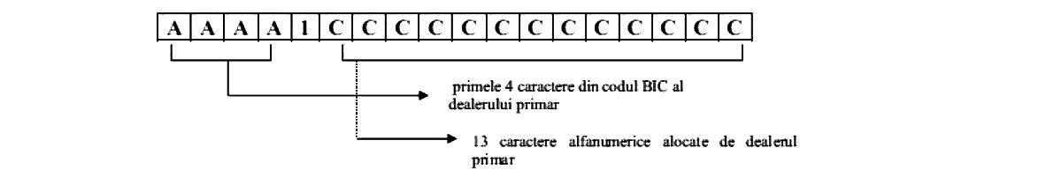 NOTĂ:Referinţa tranzacţie 1 reprezintă referinţa din Sistemul de depozitare şi decontare a instrumentelor financiare, denumit în continuare Sistemul SaFIR, a operaţiunii de vânzare sau cumpărare cu titluri de stat emise pe piaţa locală, efectuate în nume şi cont propriu de dealerul primar cu un client.Referinţa tranzacţie 2 reprezintă referinţa din Sistemul SaFIR a operaţiunii de sens contrar cu acelaşi client şi pe aceeaşi emisiune pentru care diferenţa de preţ este de maximum 10 puncte de bază faţă de preţul tranzacţiei 1.16!n reprezintă formatul în care se prezintă informaţia, respectiv câmp numeric de 16 caractere.