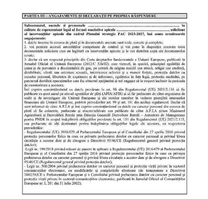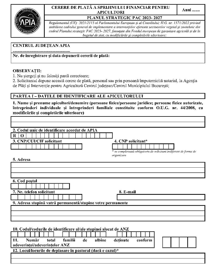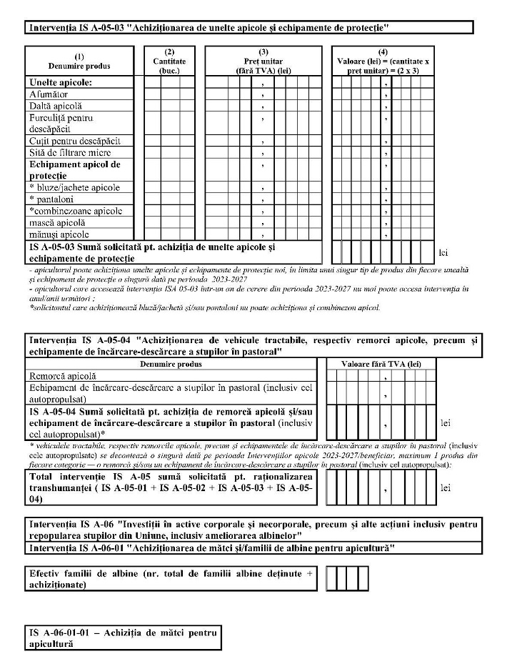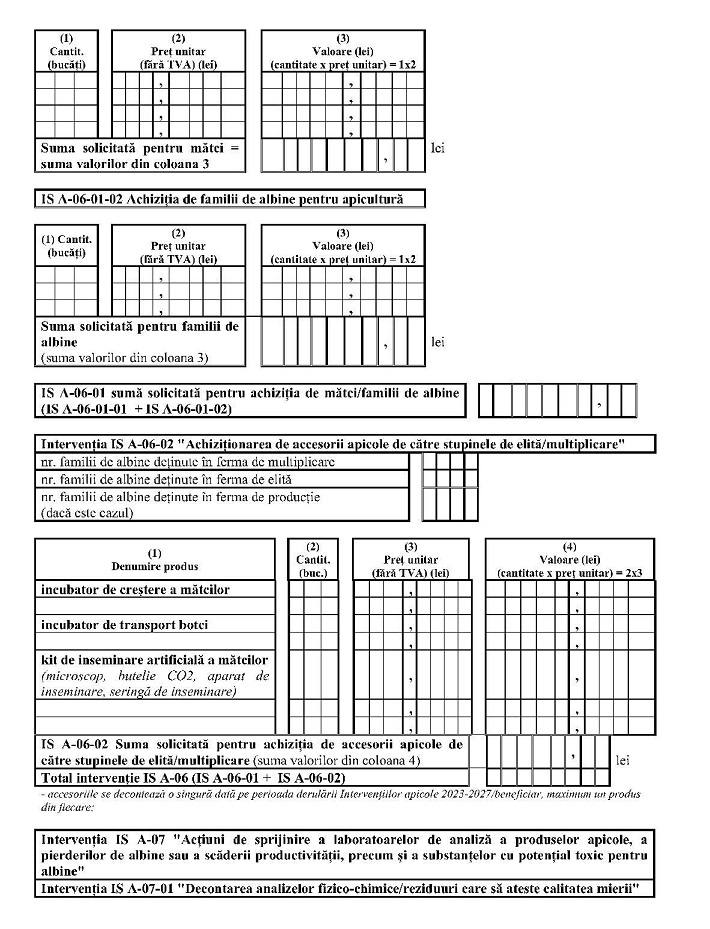Luând în considerare Referatul de aprobare nr. 190.969 din 26.02.2025 al Direcţiei generale dezvoltare rurală - Autoritate de management pentru Programul Naţional de Dezvoltare Rurală, în calitate de Autoritate de management pentru Planul strategic PAC 2023-2027,în baza prevederilor:– Planului strategic PAC 2023-2027 al României, aprobat prin Decizia de punere în aplicare a Comisiei Europene nr. C (2022) 8.78-3 din 7 decembrie 2022, cu modificările şi completările ulterioare;– Regulamentului (UE) 2021/2.115 al Parlamentului European şi al Consiliului din 2 decembrie 2021 de stabilire a normelor privind sprijinul pentru planurile strategice care urmează a fi elaborate de statele membre în cadrul politicii agricole comune (planurile strategice PAC) şi finanţate de Fondul european de garantare agricolă (FEGA) şi de Fondul european agricol pentru dezvoltare rurală (FEADR) şi de abrogare a Regulamentelor (UE) nr. 1.305/2013 şi (UE) nr. 1.307/2013, cu modificările şi completările ulterioare;– Regulamentului (UE) 2021/2.116 al Parlamentului European şi al Consiliului din 2 decembrie 2021 privind finanţarea, gestionarea şi monitorizarea politicii agricole comune şi de abrogare a Regulamentului (UE) nr. 1.306/2013, cu modificările şi completările ulterioare;– Cartei drepturilor fundamentale a Uniunii Europene, publicată în Jurnalul Oficial al Uniunii Europene (2012/C 326/02);– Regulamentului de punere în aplicare (UE) 2022/129 al Comisiei din 21 decembrie 2021 de stabilire a unor norme pentru tipurile de intervenţii privind plantele oleaginoase, bumbacul şi subprodusele vitivinicole, în temeiul Regulamentului (UE) 2021/2.115 al Parlamentului European şi al Consiliului, precum şi pentru cerinţele privind informarea, publicitatea şi vizibilitatea legate de sprijinul din partea Uniunii şi de planurile strategice PAC;– Hotărârii Guvernului nr. 1.571/2022 privind stabilirea cadrului general de implementare a intervenţiilor aferente sectoarelor vegetal şi zootehnic din cadrul Planului strategic PAC 2023-2027, finanţate din Fondul european de garantare agricolă şi de la bugetul de stat, cu modificările şi completările ulterioare,în temeiul:– dispoziţiilor art. 57 alin. (1) din Ordonanţa de urgenţă a Guvernului nr. 57/2019 privind Codul administrativ, cu modificările şi completările ulterioare, şi ale art. 9 alin. (5) din Hotărârea Guvernului nr. 30/2017 privind organizarea şi funcţionarea Ministerului Agriculturii şi Dezvoltării Rurale, precum şi pentru modificarea art. 6 alin. (6) din Hotărârea Guvernului nr. 1.186/2014 privind organizarea şi funcţionarea Autorităţii pentru Administrarea Sistemului Naţional Antigrindină şi de Creştere a Precipitaţiilor, cu modificările şi completările ulterioare;– art. 39 alin. (1) din Hotărârea Guvernului nr. 1.571/2022 privind stabilirea cadrului general de implementare a intervenţiilor aferente sectoarelor vegetal şi zootehnic din cadrul Planului strategic PAC 2023-2027, finanţate din Fondul european de garantare agricolă şi de la bugetul de stat, cu modificările şi completările ulterioare;ministrul agriculturii şi dezvoltării rurale emite prezentul ordin.Articolul IAnexa la Ordinul ministrului agriculturii şi dezvoltării rurale nr. 105/2023 pentru aprobarea criteriilor de eligibilitate, documentelor justificative, condiţiilor şi modului de implementare a intervenţiilor aferente sectorului apicol prevăzute la art. 1 alin. (2) lit. e) din Hotărârea Guvernului nr. 1.571/2022 privind stabilirea cadrului general de implementare a intervenţiilor aferente sectoarelor vegetal şi zootehnic din cadrul Planului strategic PAC 2023-2027, finanţate din Fondul european de garantare agricolă şi de la bugetul de stat, publicată în Monitorul Oficial al României, Partea I, nr. 280 din 4 aprilie 2023, cu modificările şi completările ulterioare, se modifică şi se completează după cum urmează:1. Articolul 5^1 se modifică şi va avea următorul cuprins:Articolul 5^1Pentru implementarea intervenţiilor aferente sectorului apicol prevăzute la art. 1 alin. (2) lit. e) din Hotărârea Guvernului nr. 1.571/2022, cu modificările şi completările ulterioare, cheltuielile solicitantului se efectuează cu respectarea condiţiilor privind rezonabilitatea costurilor, respectiv:a) fie achiziţionează produse la preţul de referinţă din baza de date AFIR;b) fie prezintă două oferte de preţ de la doi furnizori diferiţi pentru produsele/serviciile achiziţionate. Valoarea ce se va deconta solicitantului reprezintă valoarea pentru produsele/ serviciile achiziţionate din oferta cu cel mai mic preţ. Cele două oferte de preţ se depun odată cu înregistrarea dosarului cererii de plată la APIA.2. La articolul 6 alineatul (3), după litera d) se introduce o nouă literă, lit. e), cu următorul cuprins:e) solicitantul asigură afişarea emblemei Uniunii Europene, potrivit anexei II la Regulamentul de punere în aplicare (UE) 2022/129 al Comisiei din 21 decembrie 2021 de stabilire a unor norme pentru tipurile de intervenţii privind plantele oleaginoase, bumbacul şi subprodusele vitivinicole, în temeiul Regulamentului (UE) 2021/2.115 al Parlamentului European şi al Consiliului, precum şi pentru cerinţele privind informarea, publicitatea şi vizibilitatea legate de sprijinul din partea Uniunii şi de planurile strategice PAC, publicat în Jurnalul Oficial al Uniunii Europene, seria L, nr. 20 din 31 ianuarie 2022, denumit în continuare Regulamentul (UE) 2022/129.3. La articolul 6, alineatul (4), litera a) se modifică şi va avea următorul cuprins:a) copia documentului privind înscrierea formei asociative apicole în Registrul asociaţiilor şi fundaţiilor, respectiv copia documentului privind înregistrarea la Oficiul Naţional al Registrului Comerţului pentru cooperativele apicole;4. La articolul 9 alineatul (1), după litera c) se introduc trei noi
