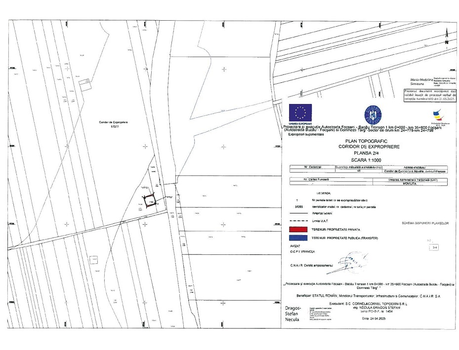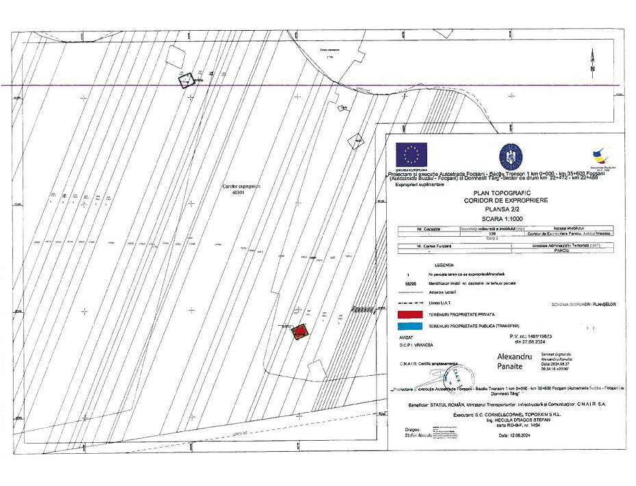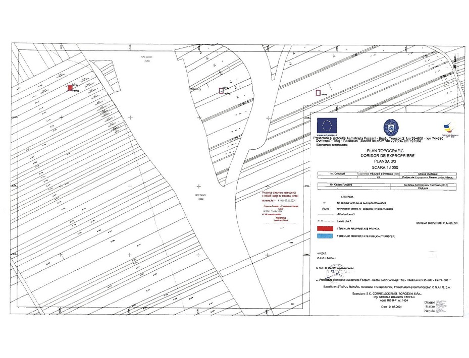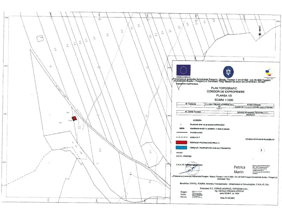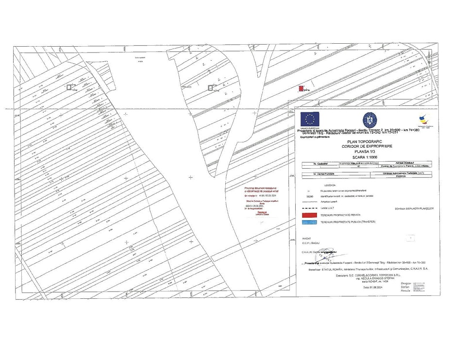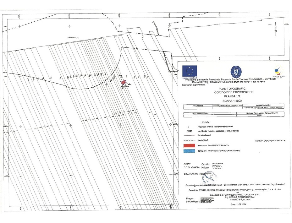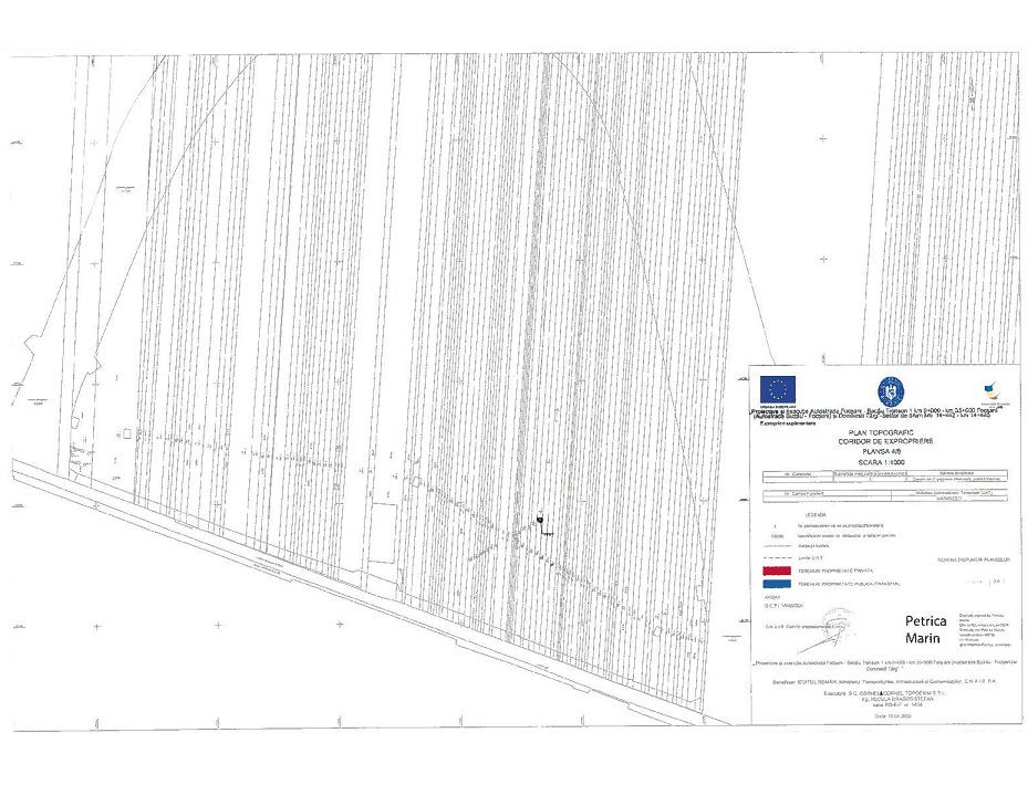 Nr. crt. | Judeţul | Unitatea administrativ-teritorială | Numele şi prenumele proprietarului/deţinătorului terenului | Tarlaua | Parcela | Numărul cadastral/Nr. topo | Numărul cărţii funciare | Categoria de folosinţă | Extravilan/ Intravilan | Suprafaţa totală a terenului (mp)![]() | Suprafaţa de expropriat teren (mp) | Valoarea de despăgubire a imobilului conform Legii nr. 255/2010 (lei) |
